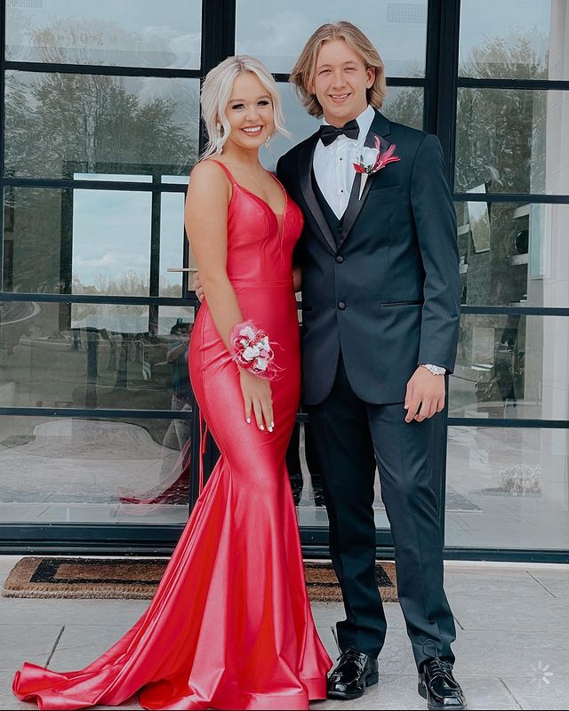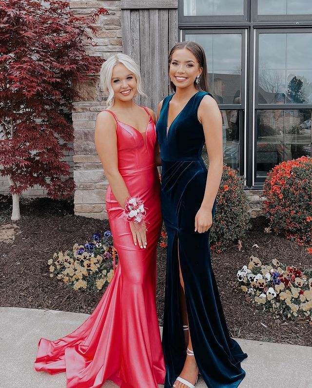 Features:Mermaid Red Satin Long Prom Evening Party Dresses