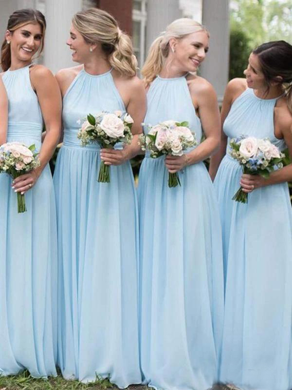 Halter Chiffon Baby Blue Bridesmaid Dresses A-Line Wedding Guest Dresses Maid of Honor Dresses