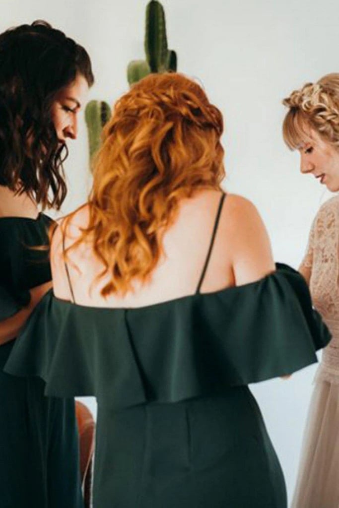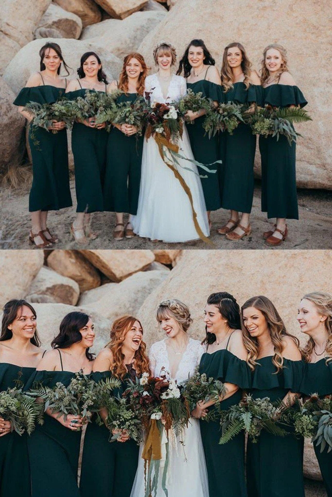 Off Shoulder Dark Green Ankle Length Cheap Bridesmaid Dresses