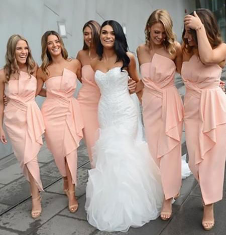 Features: Pink Sheath Bridesmaid Dresses