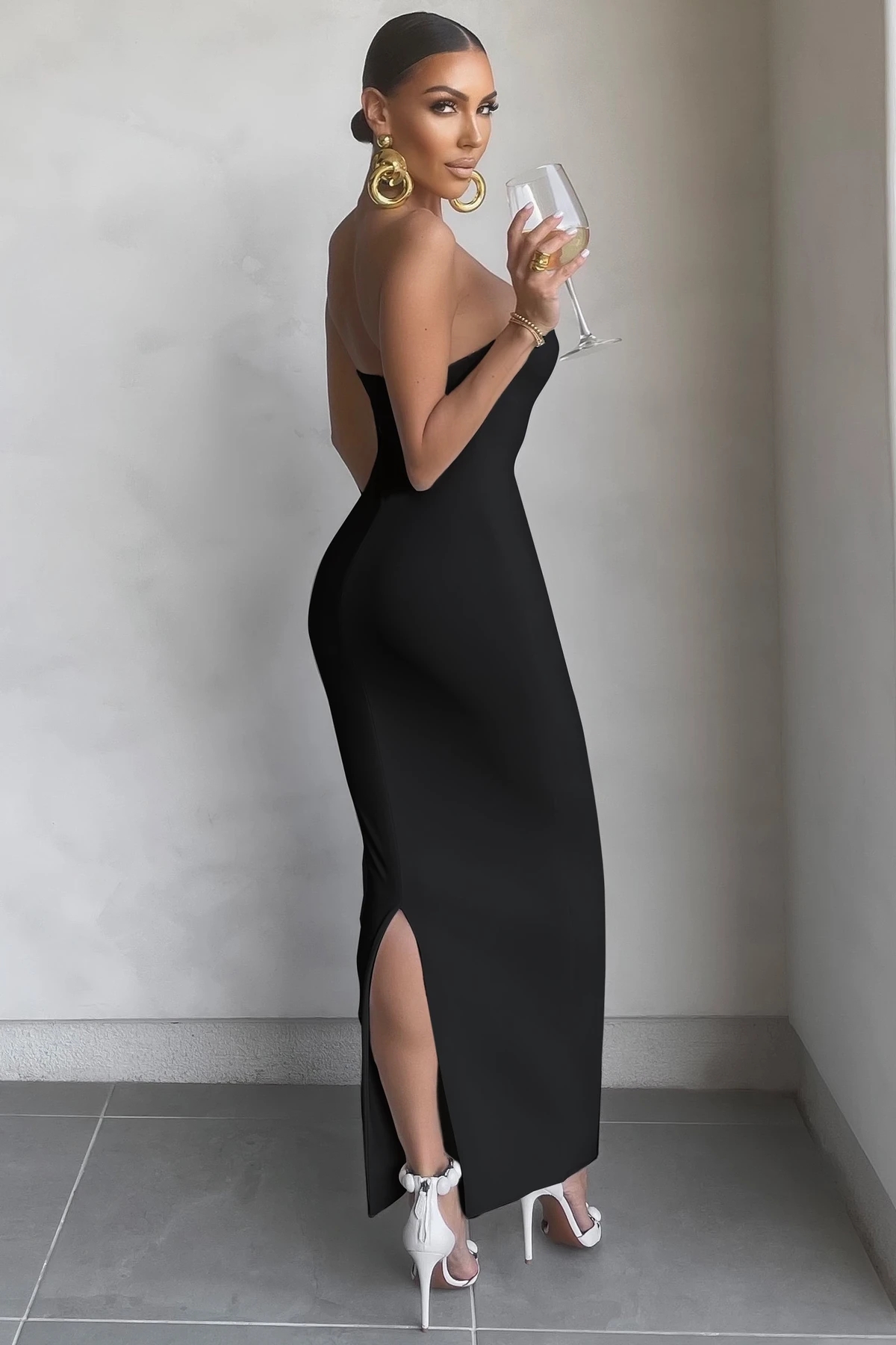 Sexy Mermaid Strapless Black Long Prom Evening Dresses
