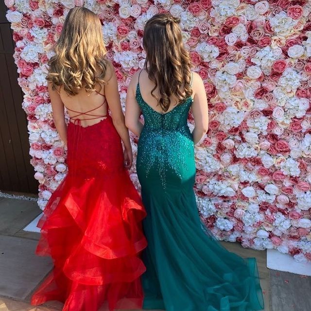 New arrival Mermaid V Neck Green Beading Long Prom Evening Dresses