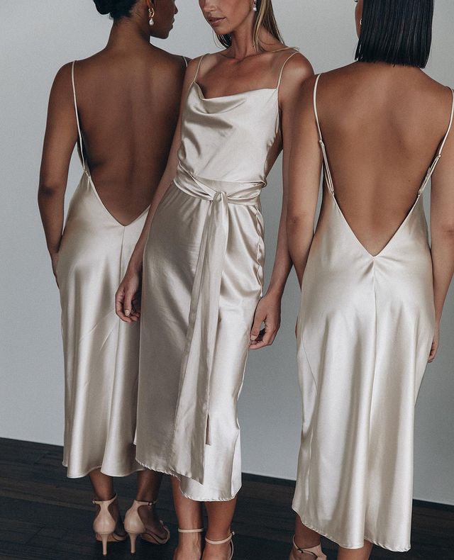 Features: Silk Satin Tea Length Bridesmaid Dresses