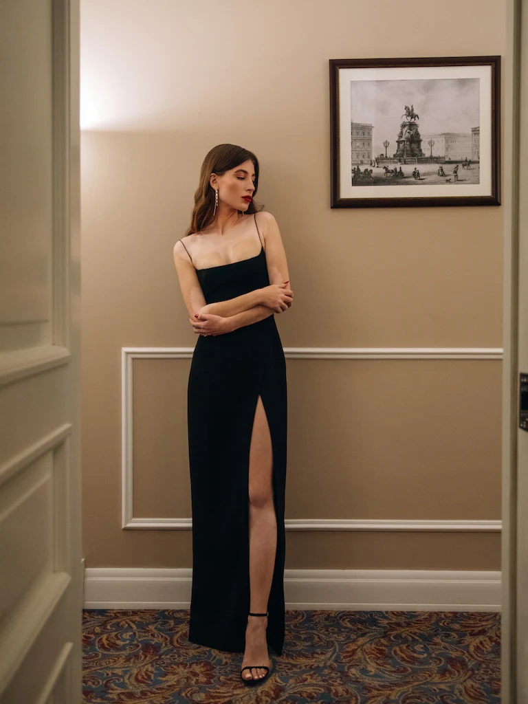 Stunning Mermaid Spaghetti Straps Black Long Prom Evening Dresses with High Slit