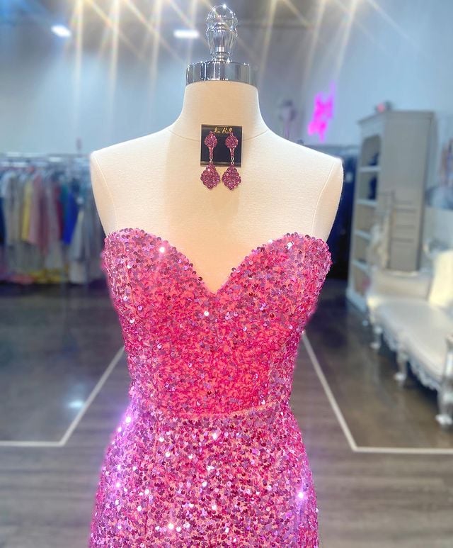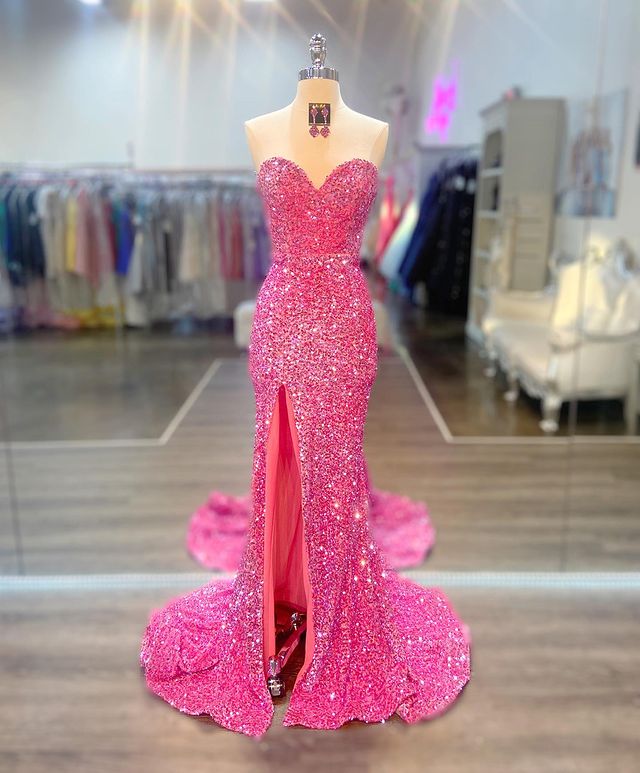 Sparkly Hot Pink Mermaid Sequins Long Prom Dress with Slit