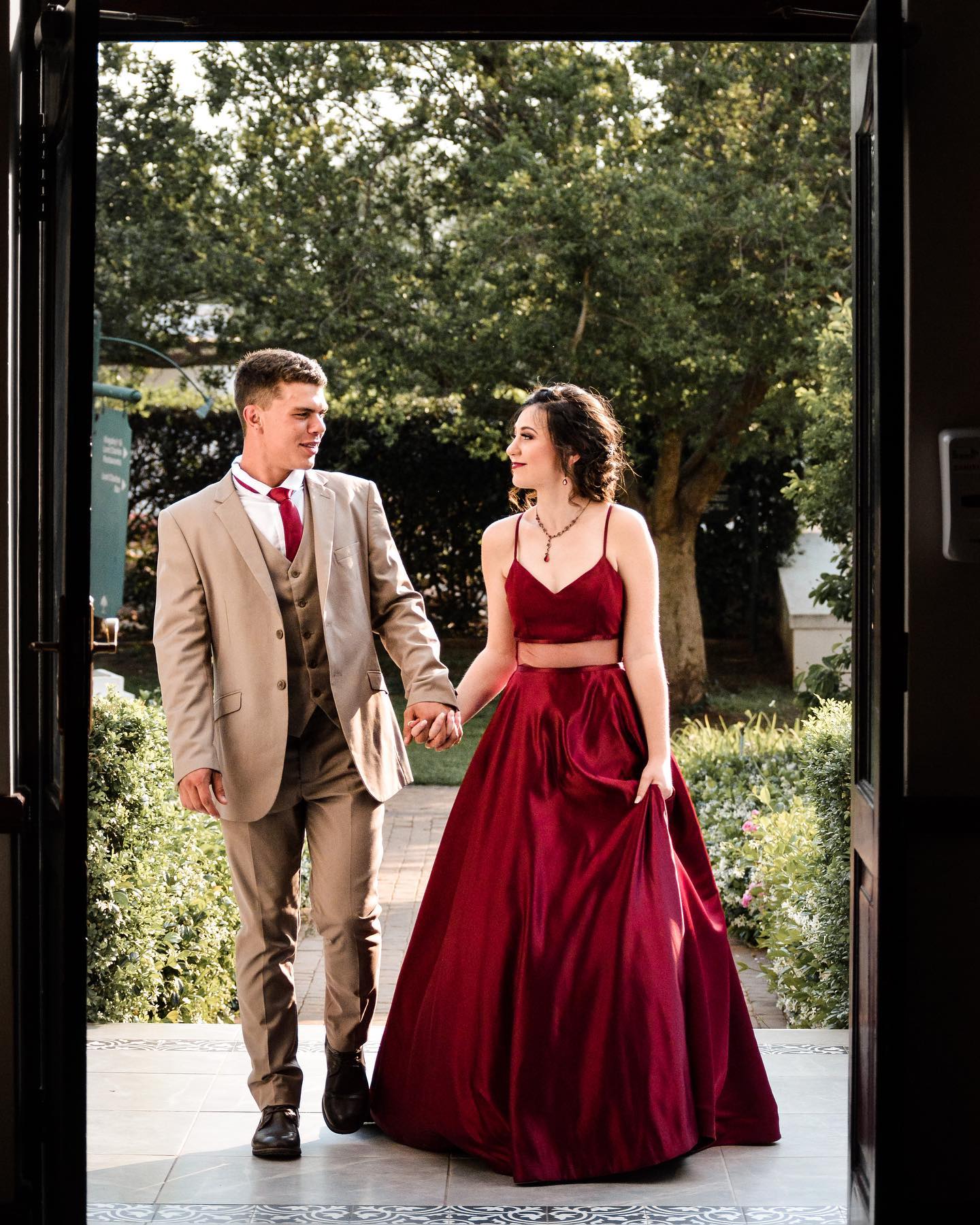 Features: Burgundy Prom Dress 2 Piece Evening Long Dresses
