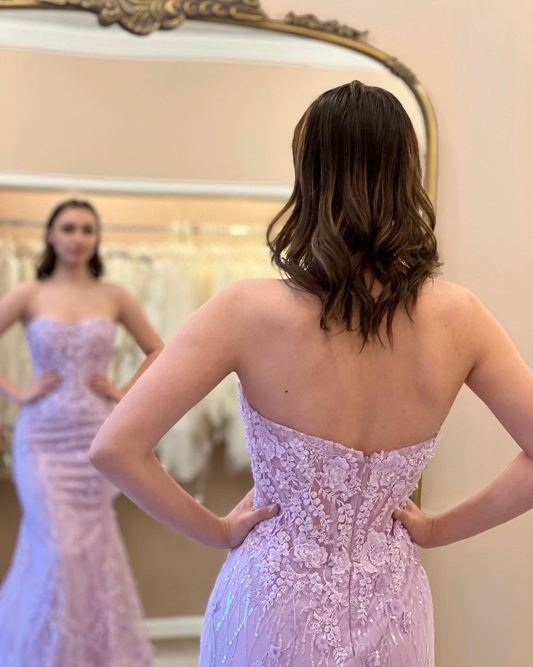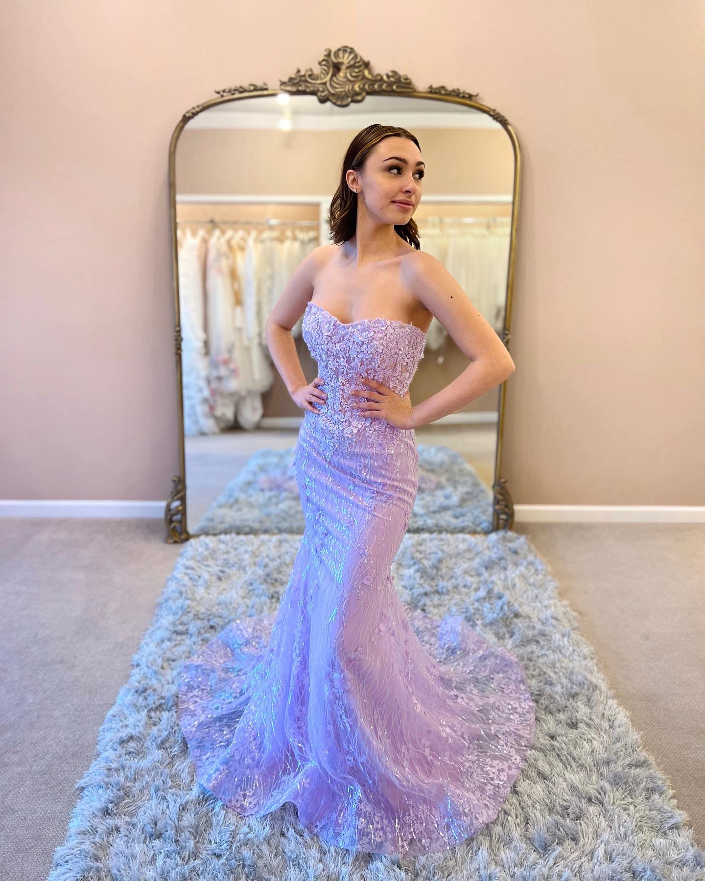 Stunning Mermaid Sweetheart Lilac Lace Appliques Long Prom Evening Dresses