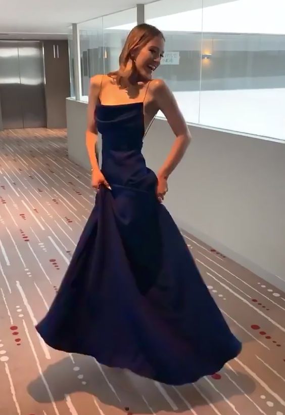 Features:A-Line Navy Blue Long Prom Evening Dress