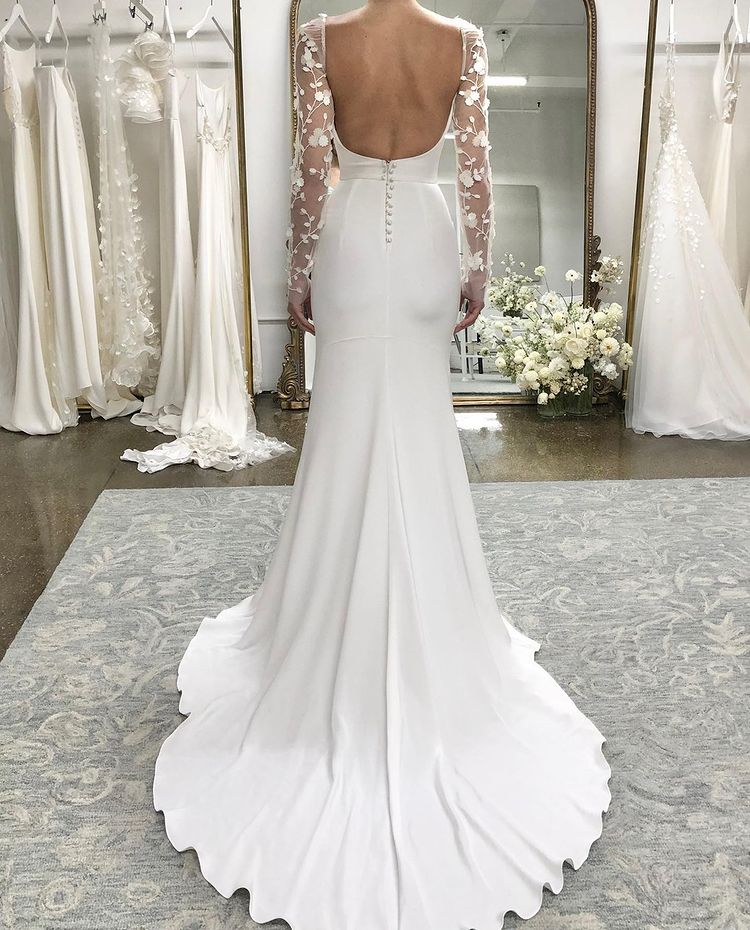 Features:Elegant Mermaid Long Sleeves Wedding Dress