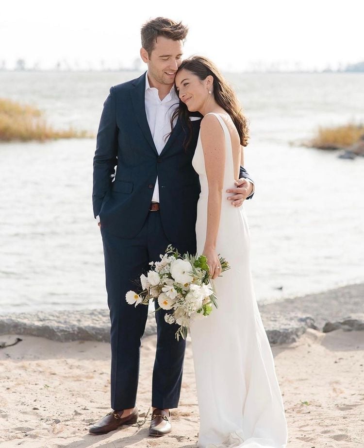 Elegant Mermaid Boat Neck Soft Satin Long Wedding Dresses, Simple Beach Wedding Dress