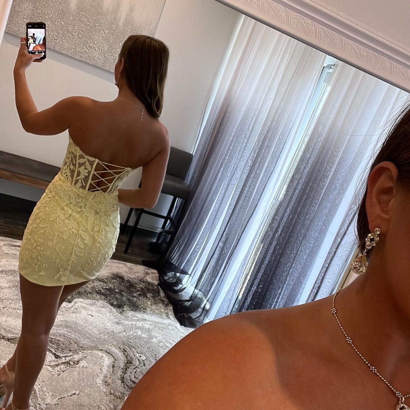Cute Sweet Daffodil Lace Short Homecoming Dresses with Beading