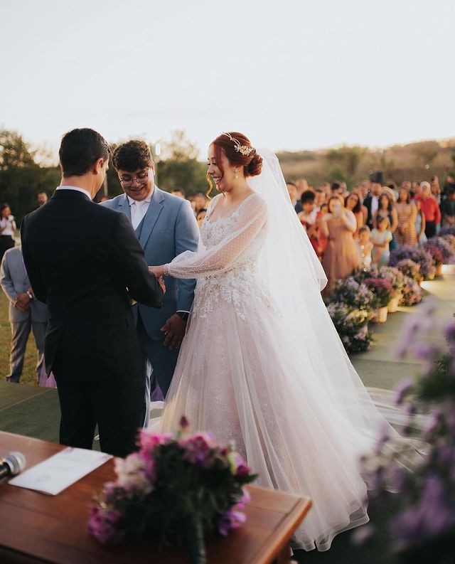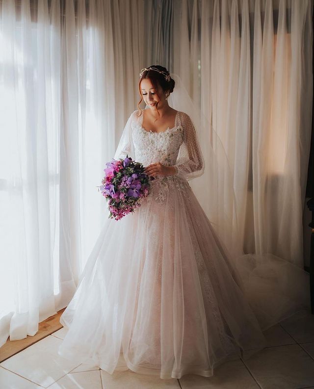 Elegant Scoop Neck Long Sleeves Tulle Wedding Dresses with Lace