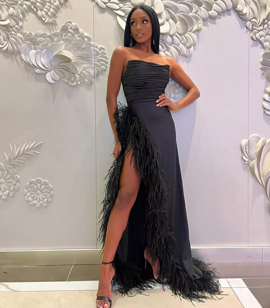 Cute Mermaid Strapless Satin Long Prom Dresses with Slit