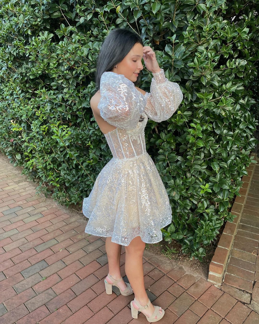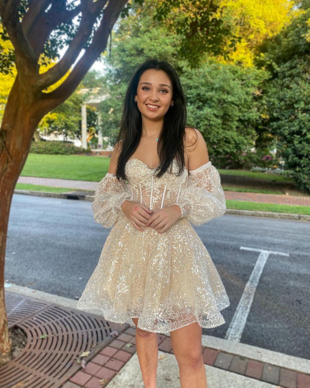 Features: A Line Champagne Lace Sequins Homecoming Dresses