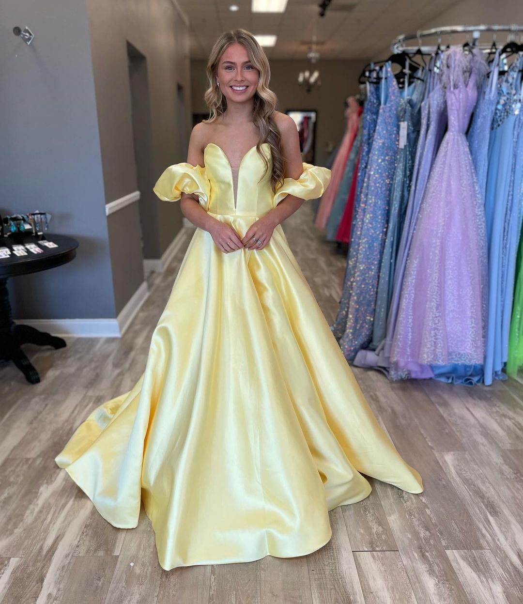 Fashion Ball Gown Sweetheart Yellow Satin Prom Dresses