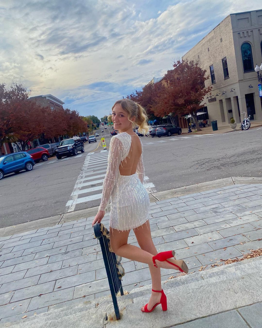 Stunning Bodycon Long Sleeves White Sequin Short Homecoming Dresses